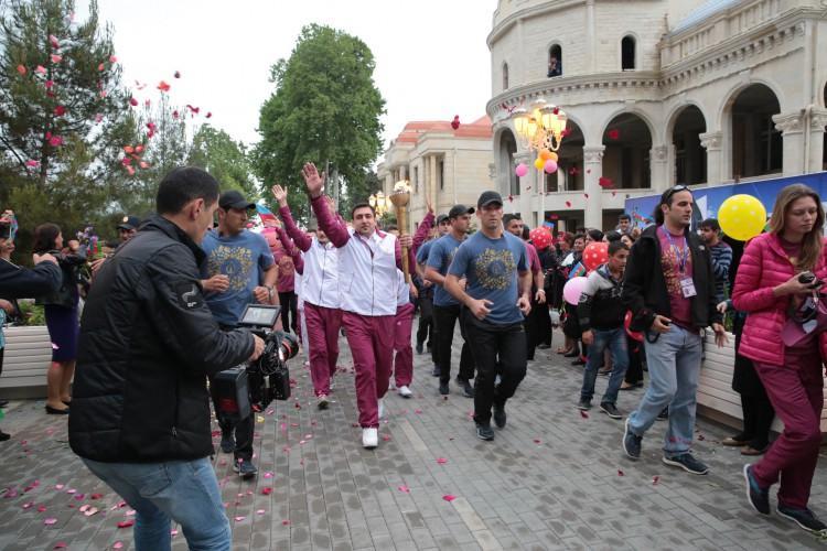 Məşəlin qarşılanma mərasimi respublikamızın tanınmış incəsənət ustalarının və yerli musiqiçilərin konsert proqramı ilə davam edib.