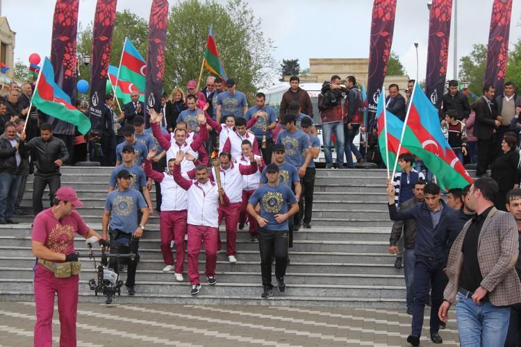 Sonra birinci Avropa Oyunlarının məşəli Gəncəyə yola salınıb.