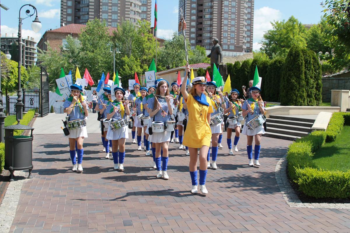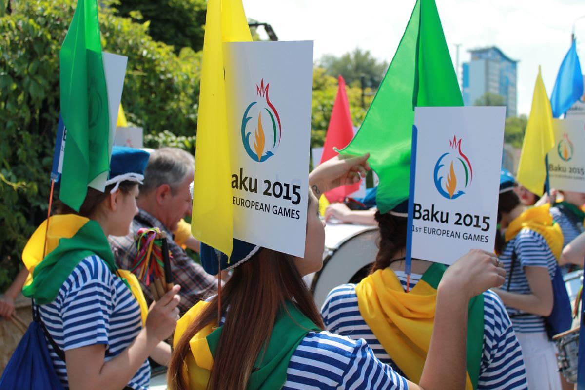 Şəhərin mərkəzində bayram yürüşü zamanı, həmçinin paytaxtın sakinlərinə və qonaqlarına I Avropa Oyunları ilə bağlı bukletlər, jurnallar paylanılıb, onlara Oyunlar barədə ətraflı məlumat verilib.