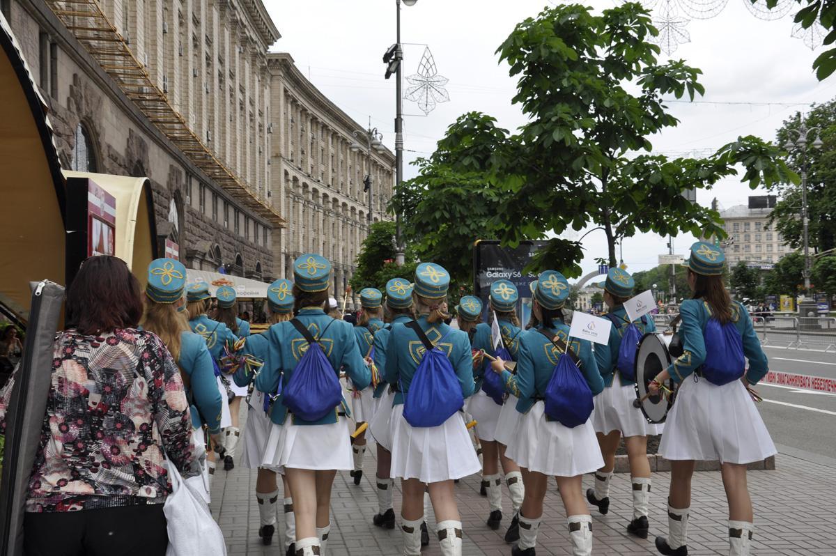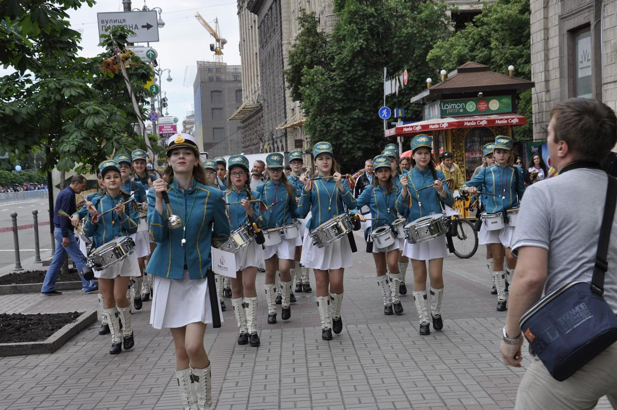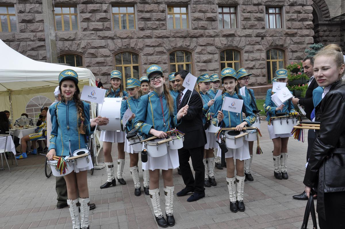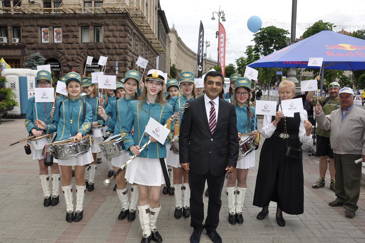 Qol.Az-ın məlumatına görə, Azərbaycan-Ukrayna Beynəlxalq Alyans, “Düşüncə” Gənclərin İnkişafına Dəstək” İctimai Birliyinin birgə təşkilatçılığı və Trend İnformasiya Agentliyinin informasiya dəstəyi ilə baş tutan bayram yürüşündə Kiyevin tanınmış “Super Barabanşiçı” (Супер Барабанщицы) ansamblı şəhərin mərkəzi Xreşatik küçəsində I Avropa Oyunlarının loqosu olan bayraqlarla birgə marş keçiriblər.