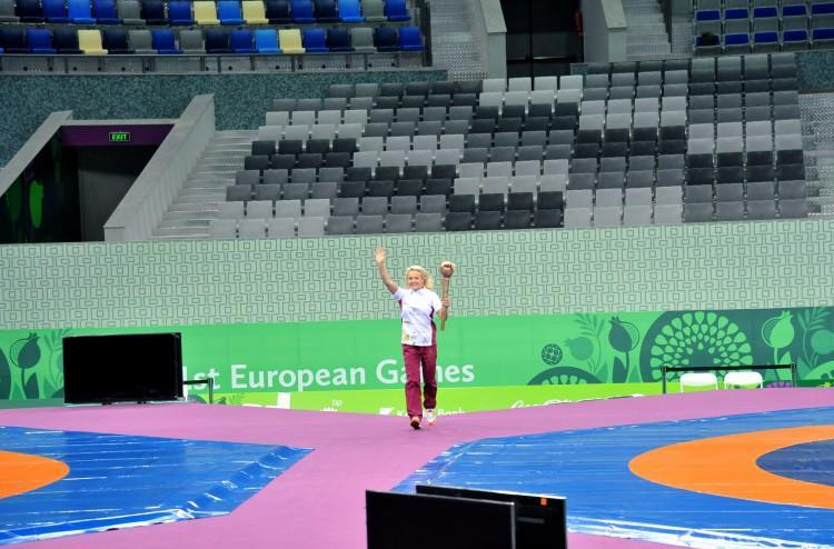 Olimpiya Oyunlarının ikiqat mükafatçısı, dünya və Avropa çempionu, güləşçi Mariya Stadnik “Bakı-2015”-in məşəlini Heydər Əliyev adına İdman Sarayına gətirib. Arenanın daxilində məşəl ilə hərəkət edən birinci Avropa Oyunlarının idman elçisi Mariya Stadnik deyib: “Mötəbər idman yarışının məşəlçisi olduğum üçün özümü xoşbəxt hiss edirəm. Həmçinin birinci Avropa Oyunlarının idman elçisi və yarışın iştirakçısıyam. Çox istərdim ki, birinci Avropa Oyunlarının çempionu adını qazanım. Yarışa çox ciddi hazırlaşmışam. Olimpiya Oyunlarında olduğu kimi çox həyəcanlıyam. Ümid edirəm ki, azarkeşlərimi qələbə ilə sevindirəcəyəm”.