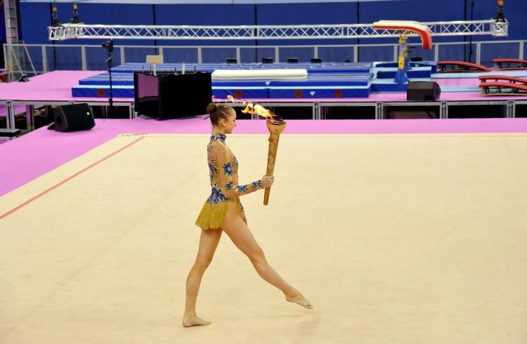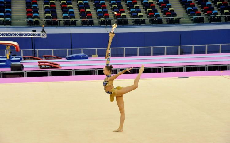 Birinci Avropa Oyunları məşəlinin növbəti dayanacağı Milli Gimnastika Arenası olub. Bədii gimnastika üzrə ikiqat Azərbaycan çempionu, Avropa çempionatının bürünc mükafatçısı Marina Durunda məşəl ilə müxtəlif nümunəvi çıxışlar edib. Məşəlçi olması ilə bağlı sevincin bölüşən M.Durunda bildirib: “Belə mötəbər yarışın məşəlçisi olmaq mənim üçün böyük fəxrdir. Birinci Avropa Oyunları Azərbaycanın idman tarixində çox mühüm hadisədir. Uzun müddətdir ki, bu Oyunlara hazırlaşırıq. Əzmlə mübarizə aparıb ölkəmizi layiqincə təmsil edəcəyik”.