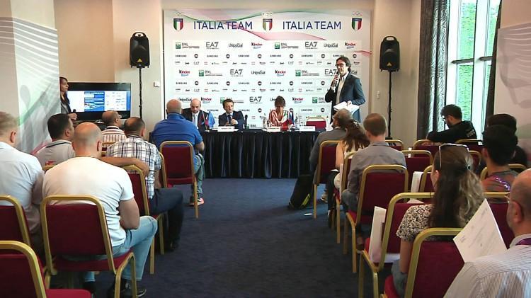 Mərasimi giriş sözü ilə açan İtaliyanın Azərbaycandakı səfiri Campolo Kutillo I Avropa Oyunlarına ev sahibliyi edən Bakının qonaqları yüksək səviyyədə qarşıladığını bildirib: "Bakı çox gözəl şəhərdir və qonaqları yüksək səviyyədə qarşılayır. Avropa oyunlarından sonra İtaliya milli komandası oktyabr ayında "Avro-2016"nın seçmə mərhələsində Azərbaycan yığması ilə qarşılaşacaq. Məlumat üçün qeyd edim ki, Avropa Oyunlarında iştirak edən idmançıların sayına görə ikinci yerdə məhz İtaliyadır".