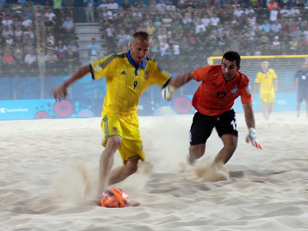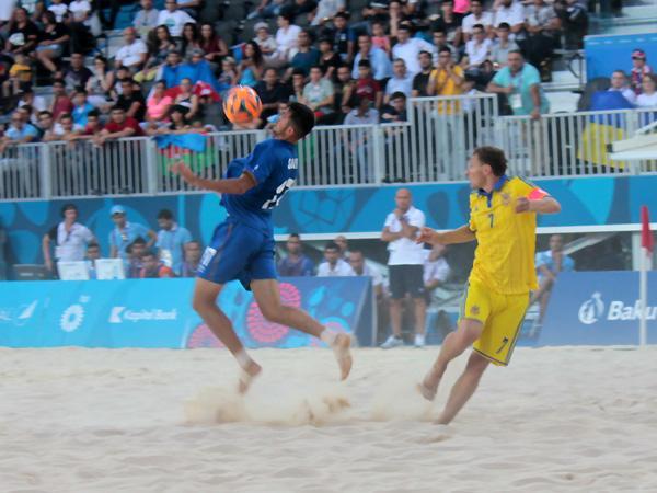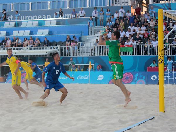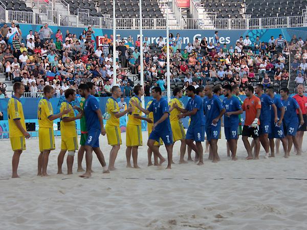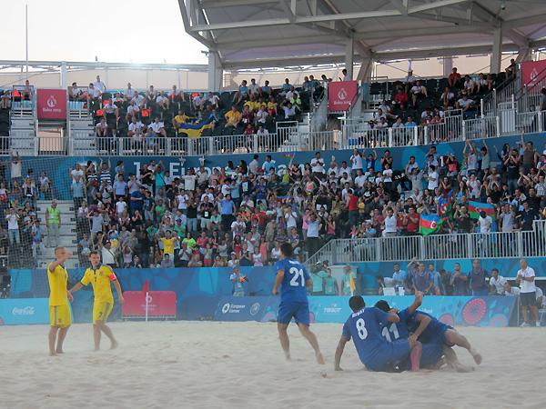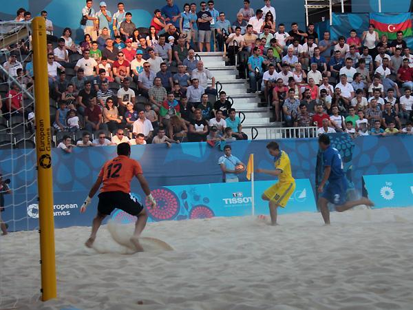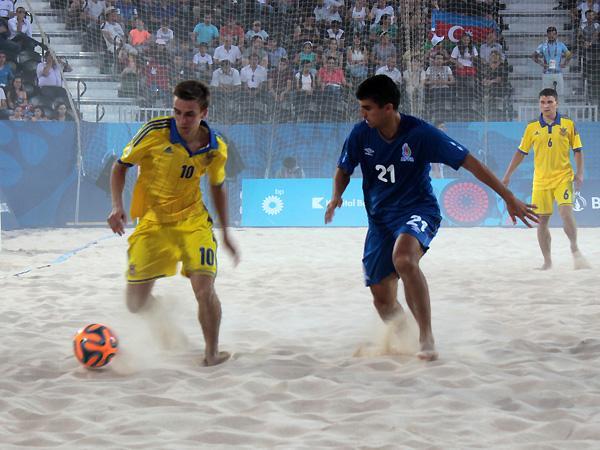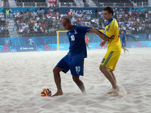 "Bakı-2015" Birinci Avropa Oyunlarında çimərlik futbolu üzrə Azərbaycan milli komandası ilk oyununda Ukraynaya 1:3 hesabı ilə uduzub.
