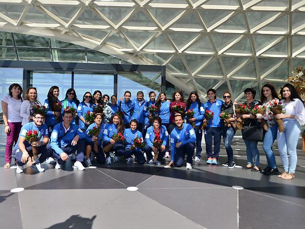 Qol.Az-ın AFFA-nın rəsmi saytına istinadən verdiyi məlumata görə, hava limanında yığmamızı futbol ictimaiyyətinin nümayəndələri, azarkeşlər və mətbuat təmsilçiləri qarşılayıb.