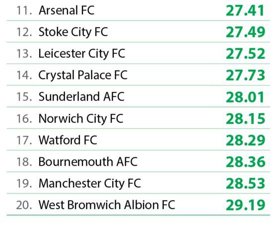 Çempionatın ən yaşlı klubu isə futbolçularının orta yaş həddi 29,19 olan "Vest Bromviç" komandasıdır.