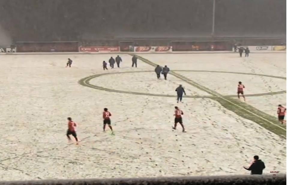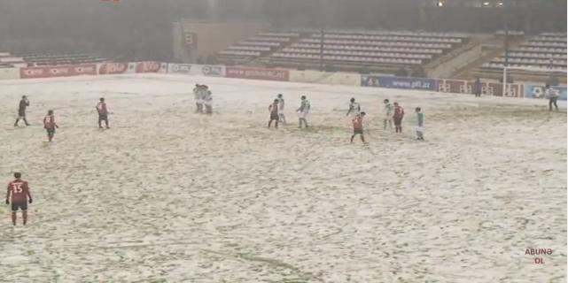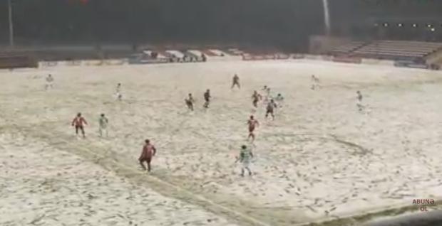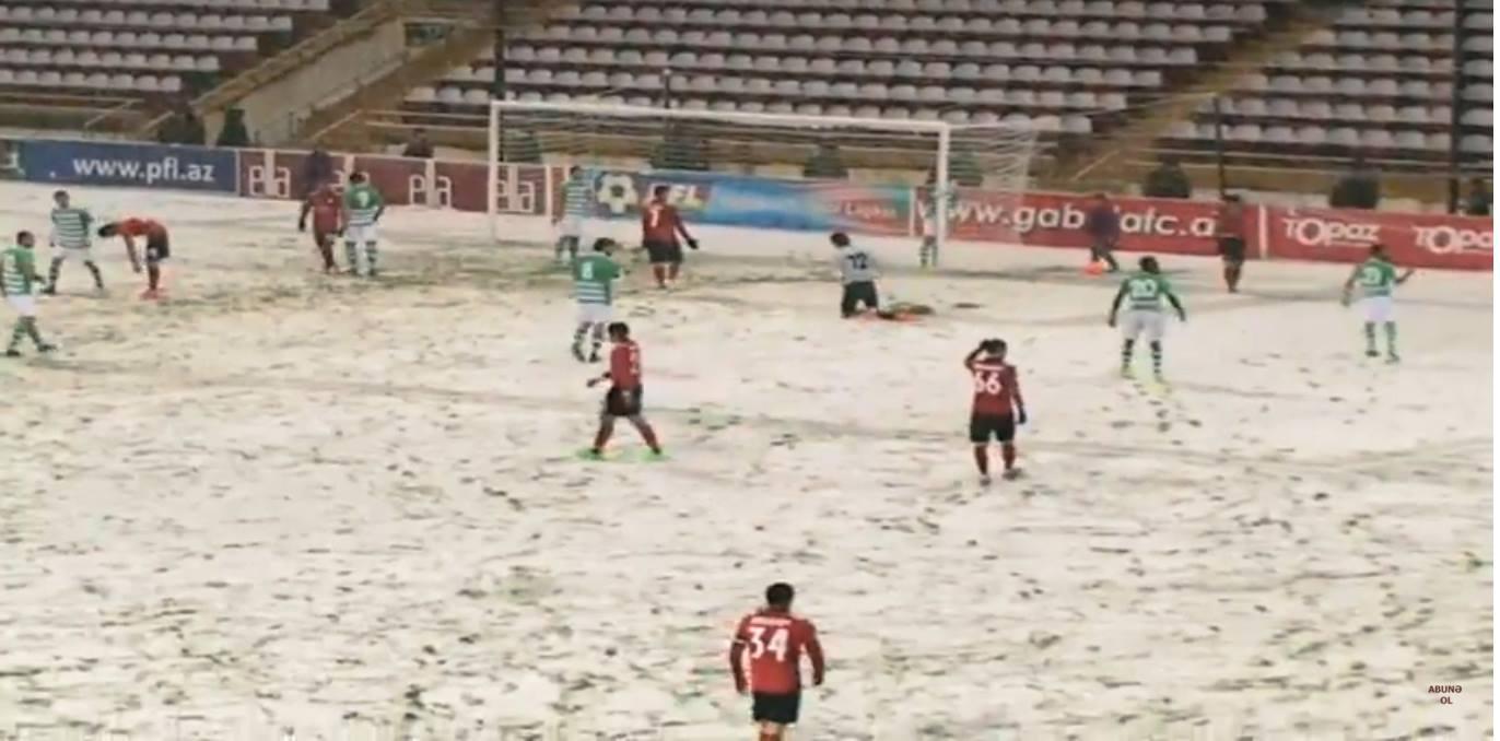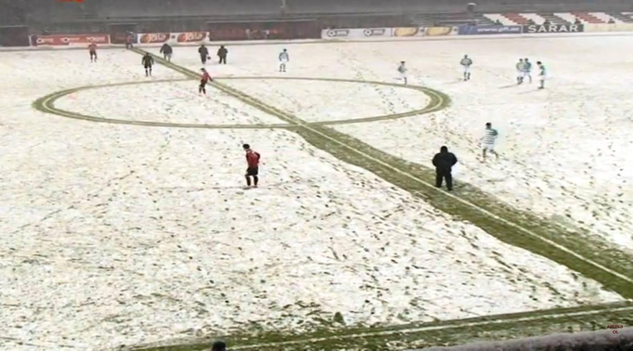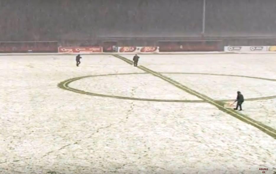 Komandalar fasiləyə yollandıqda artıq stadionun ot örtüyünü qarla əhatə olunub. Hazırkı hava şəraiti futbol oynamaq üçün əlverişli olmasa da, matç davam etdirilir.