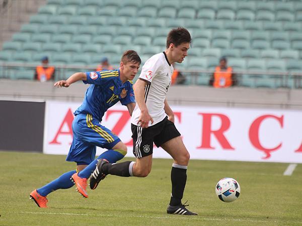 17 yaşadək futbolçular arasında Bakıda təşkil olunan Avropa çempionatının final mərhələsinin B qrupunda Ukrayna Almaniya ilə bərabərə qalıb - 2:2.