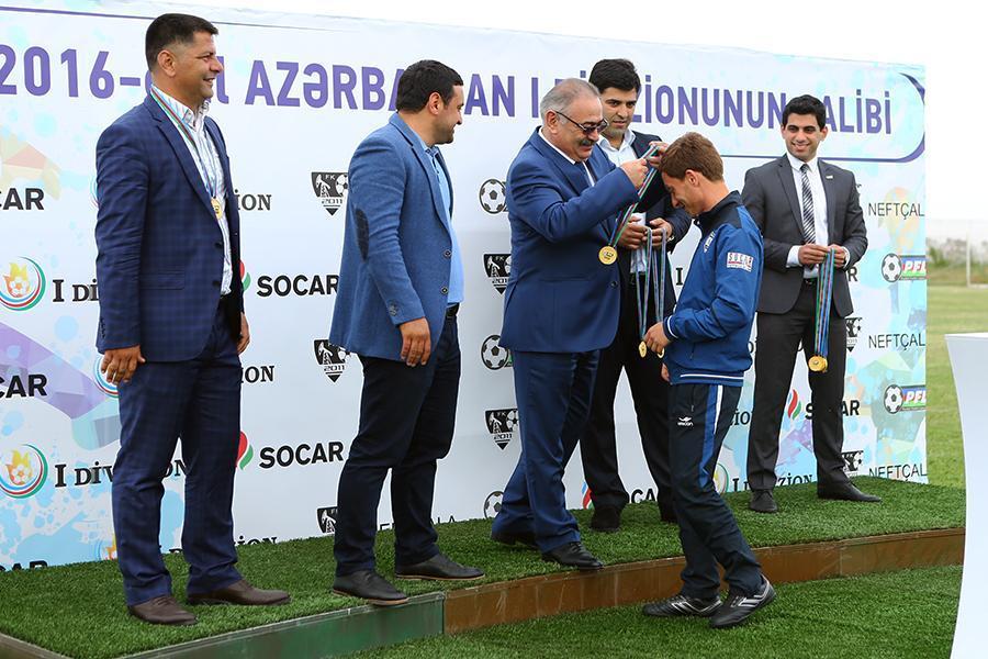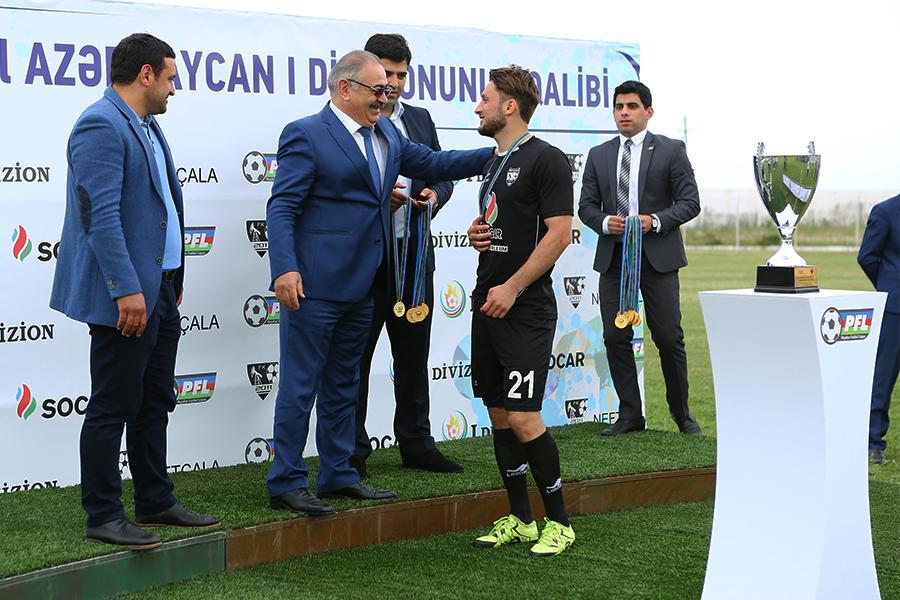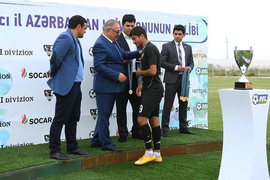 Qol.az-ın PFL-in saytına istinadən yaydığı xəbərə görə. 26-cı turun “Neftçala” – “Energetik” (10-0) görüşündən sonra qalib komanda qızıl medallarına qovuşub. Kuboku və qızıl medalları qalibə Peşəkar Futbol Liqasının prezidenti Ramin Musayev təqdim edib. R. Musayev “Neftçala”nı birinci divizionun qalibi olması münasibəti ilə təbrik edib, kluba öz arzularını bildirib.
