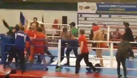 Rinqdəki idmançılar və onların məşqçiləri, eləcə də döyüşü izləyənlər arasında kütləvi dava düşüb.