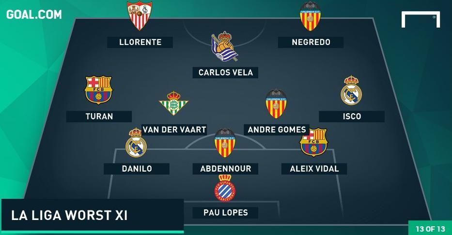 Dünyanın ən məşhur futbol portallarından olan goal.com İspaniya La Liqasında 2015/16 mövsümün ən uğursuz futbolçularından ibarət rəmzi komandasını elan edib.