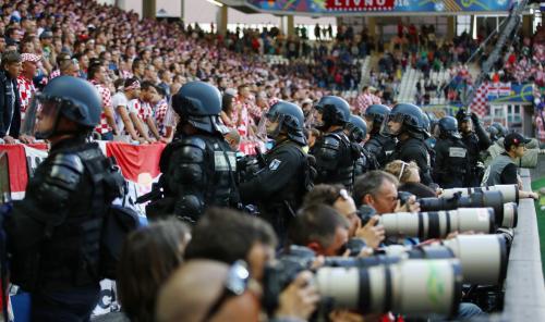 Daha sonra tribunada xorvatiyalı azarkeşlər arasında dava düşüb. Lakin Fransa jandarmasının müdaxiləsindən sonra ara sakitləşib və oyun bərpa olunub.