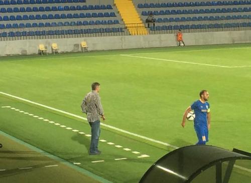 Qol.az-ın məlumatına görə, Moldova klubunun prezidenti Aldan Şişxanov baş məşqçi üçün nəzərdə tutulan texniki zonada futbolçulara göstəriş verir.