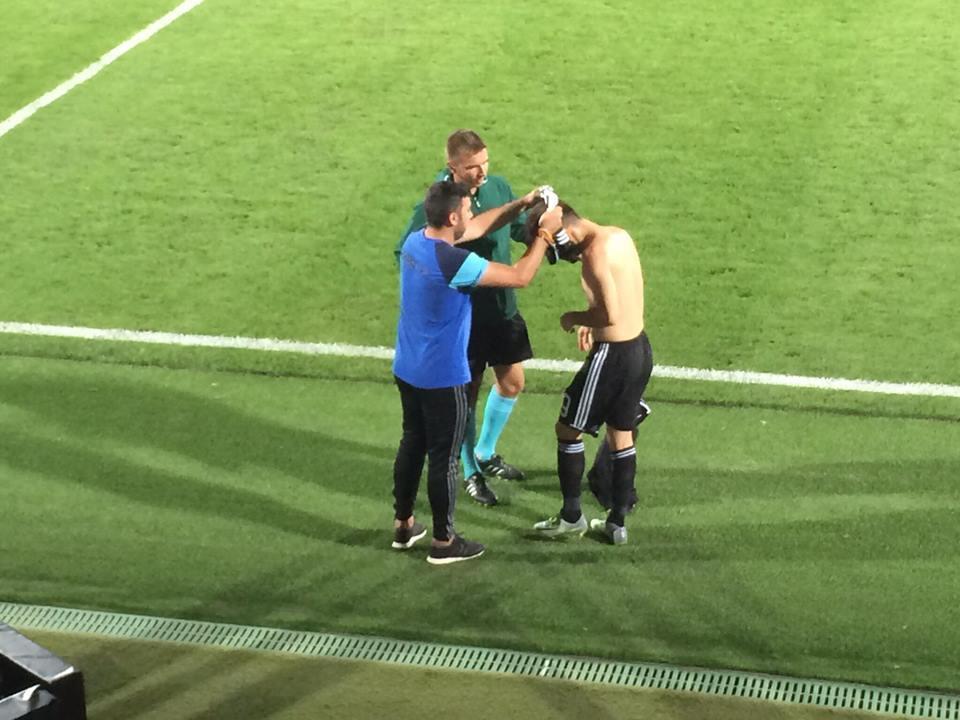 Qol.az-ın məlumatına görə, görüşün 20-ci dəqiqəsində rəqib futbolçu ilə mübarizə zamanı onun forması cırılıb.