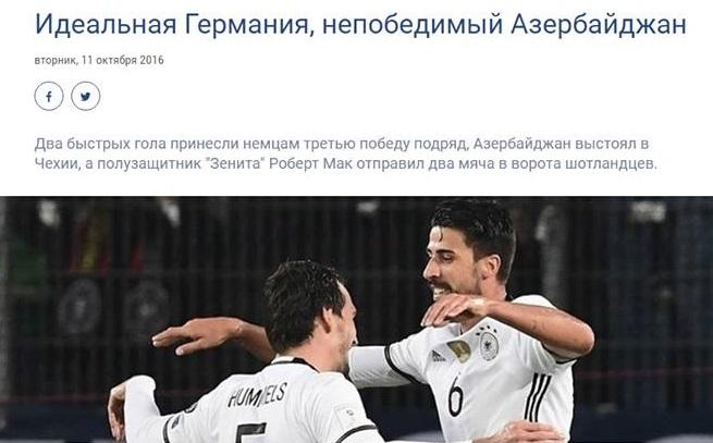 Qol.az-ın məlumatına görə, UEFA-nın saytının rus bölməsi komandamızın qrupda inamlı çıxışı haqda xəbəri manşetdə verib.