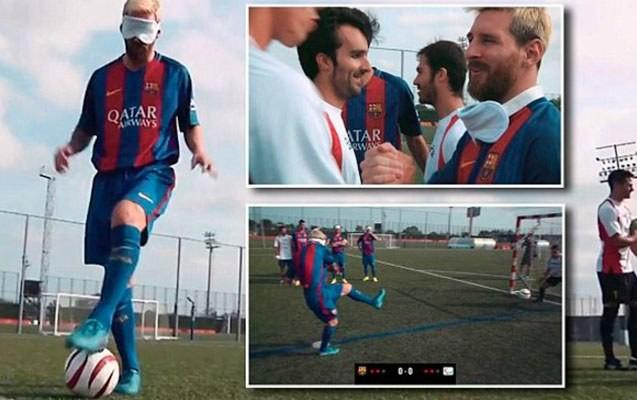 Messi gözünü bağlayıb, görmə əngəllilərə qarşı oynadı - Video