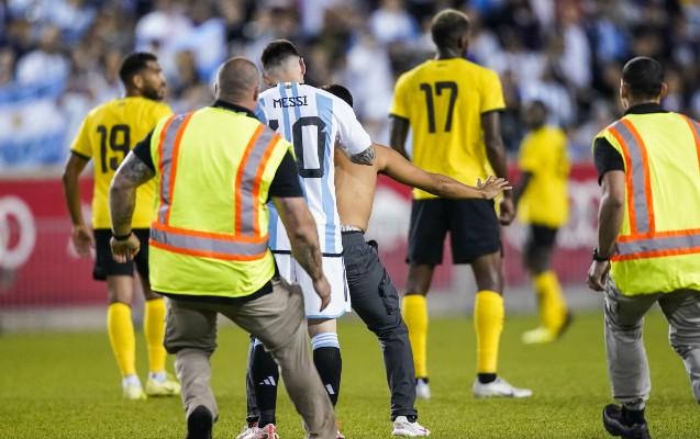 Messi meydana daxil olan azarkeşin kürəyinə imza atdı - Şəkillər