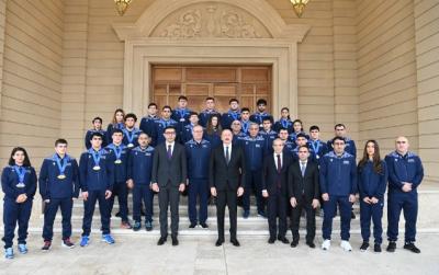 Prezidentin güləşçilərlə görüşündən - Şəkillər