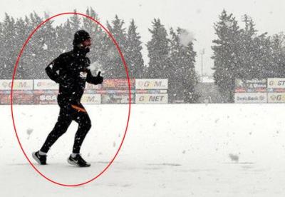 Arda qarlı havada təkbaşına məşq etdi - Video