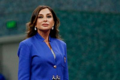 Mehriban Əliyeva futbol millimizin oyununda - Şəkil